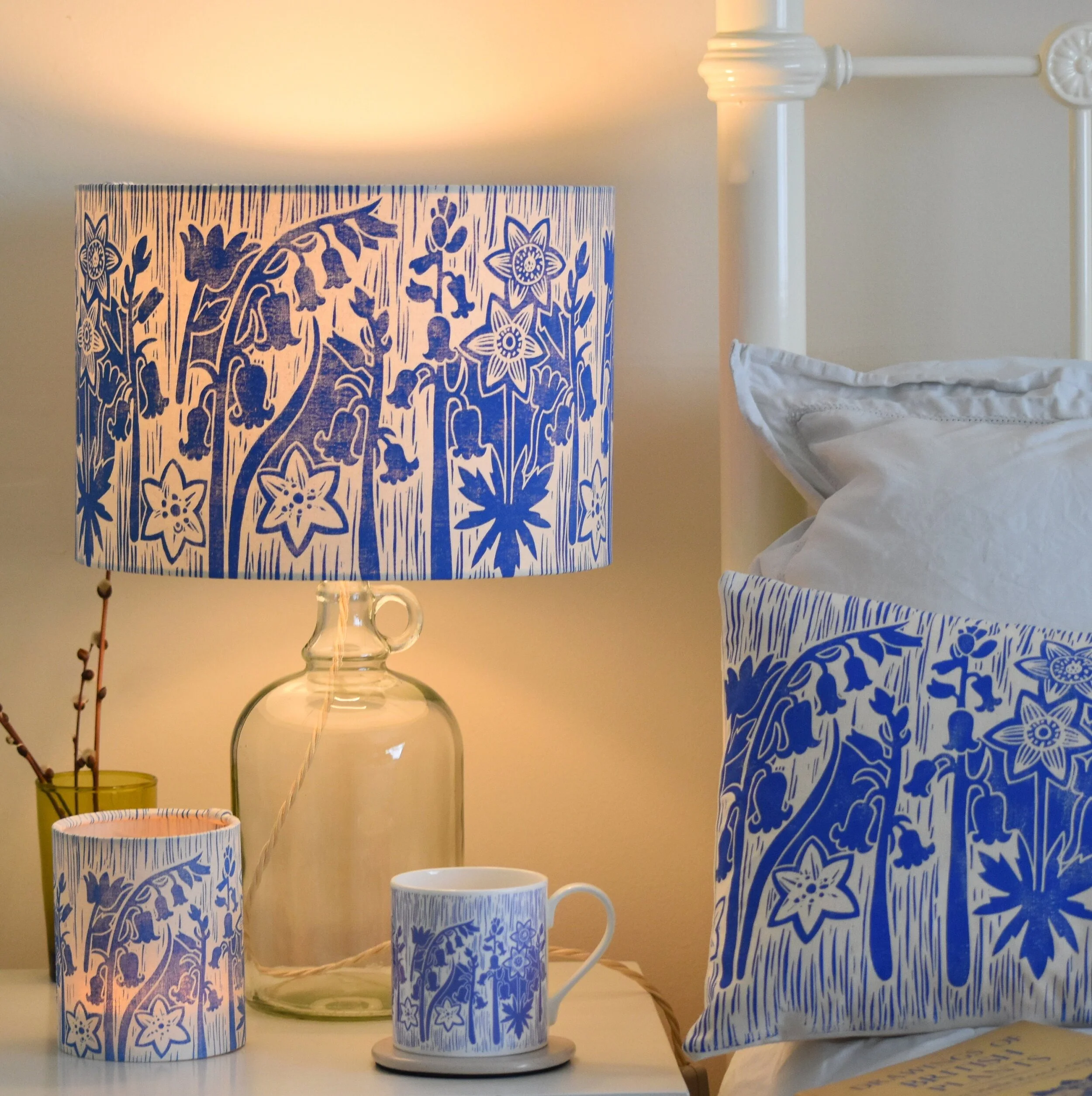 An original design taken from my 'Bluebell' block-print (this design is also available as a tea light cover/lantern, cotton cushion + lampshade drum)