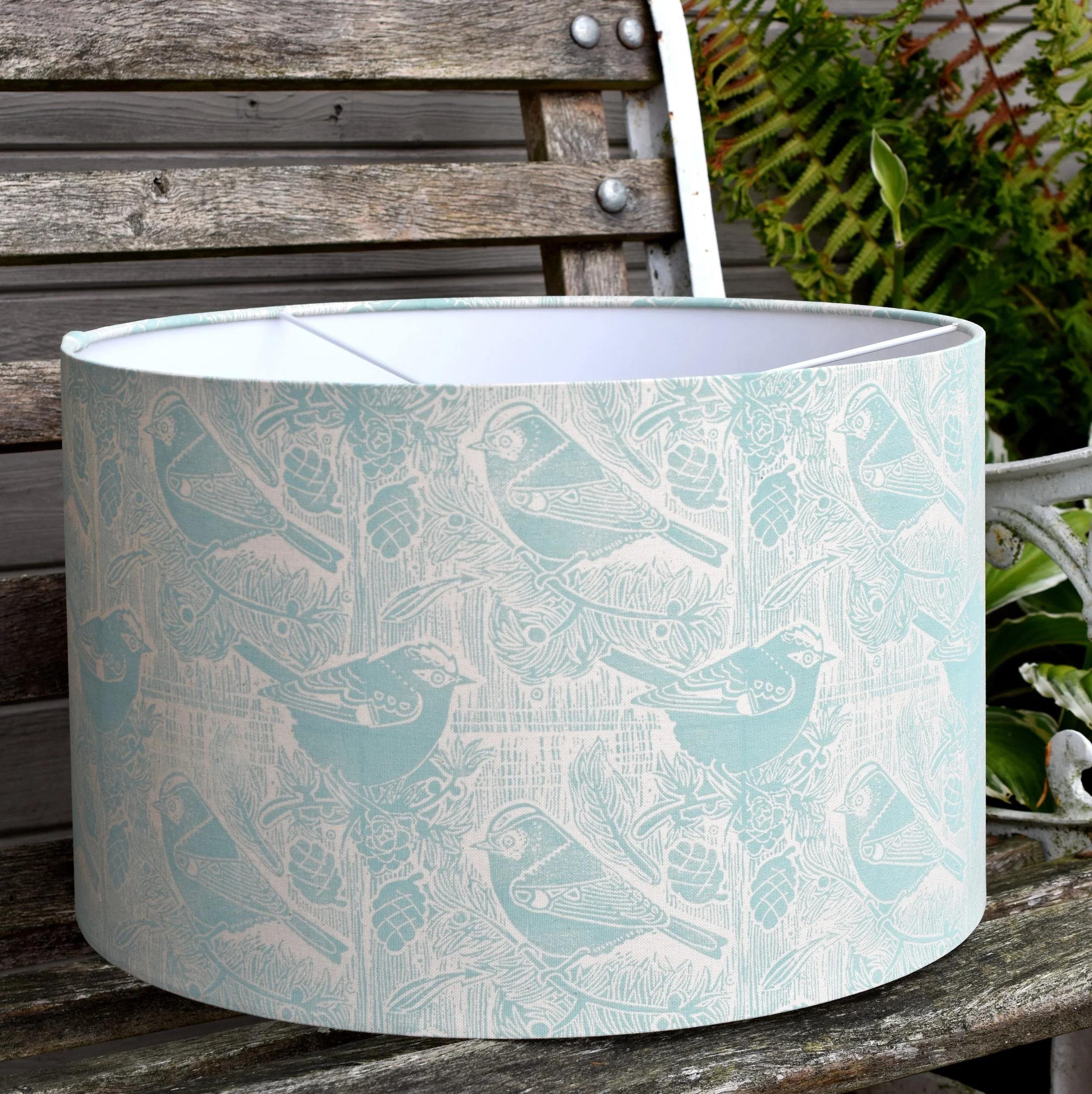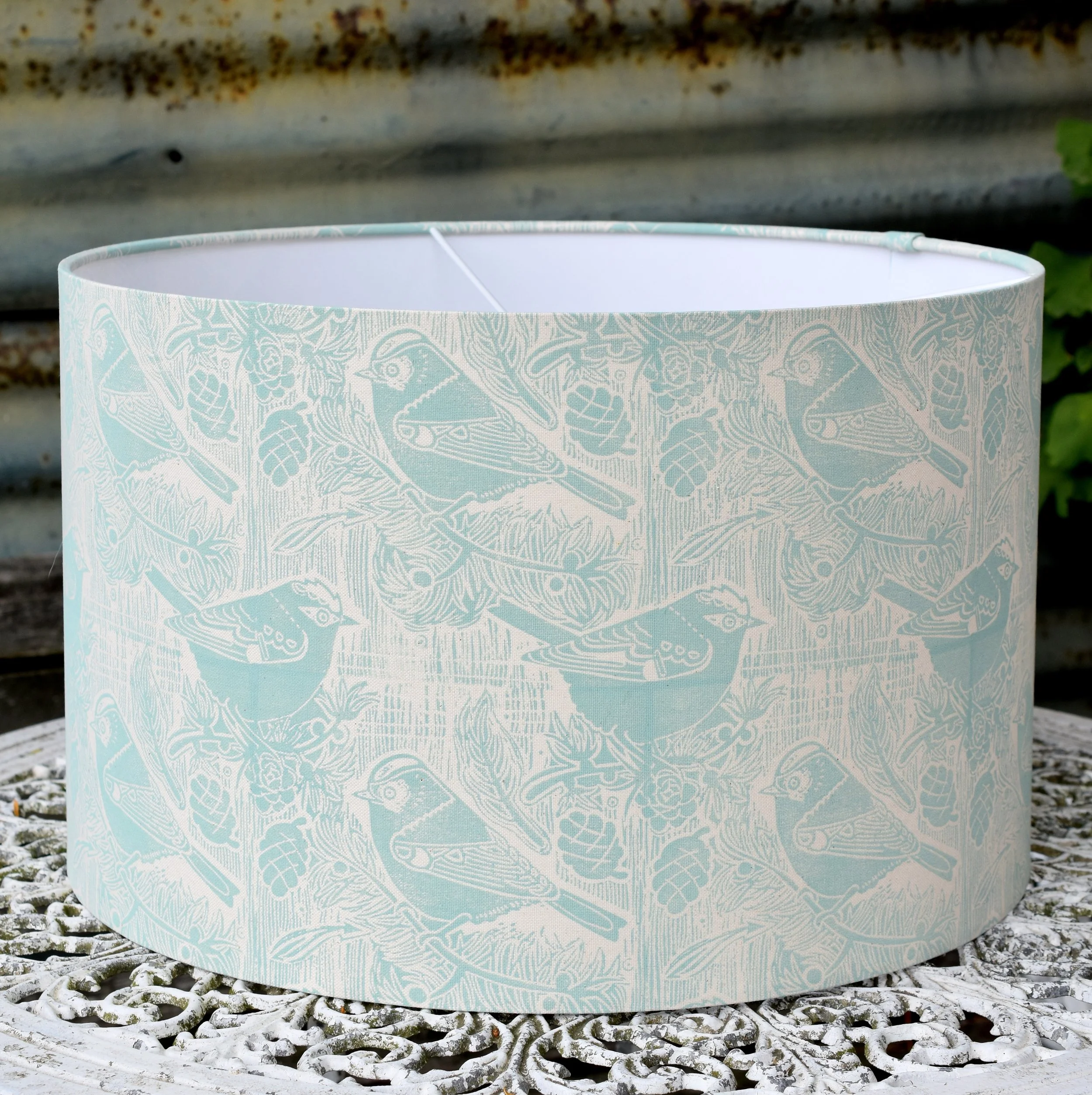 A beautiful lampshade inspired by the rare + tiny Firecrest + Goldcrest birds.